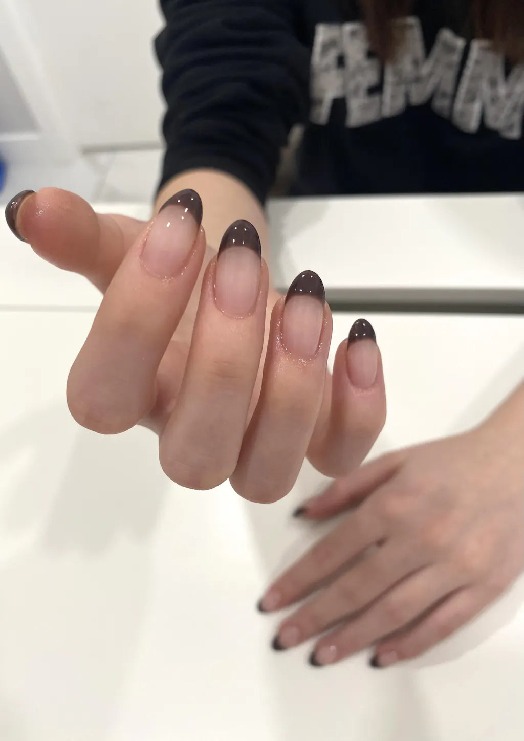 Lightly buff nails and cleanse with 70%+ alcohol to remove oils and dusts.